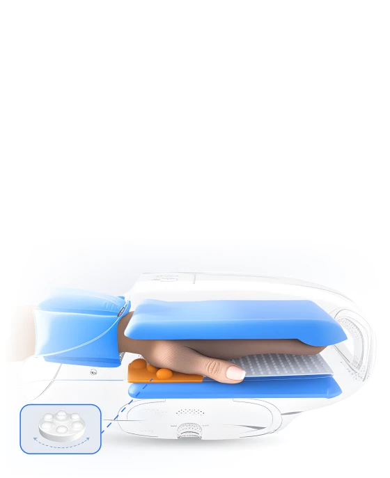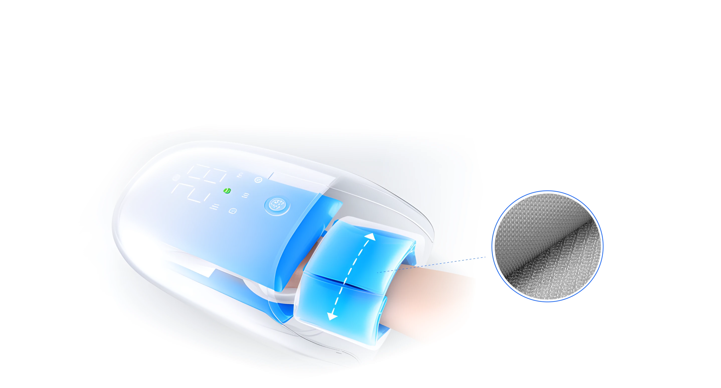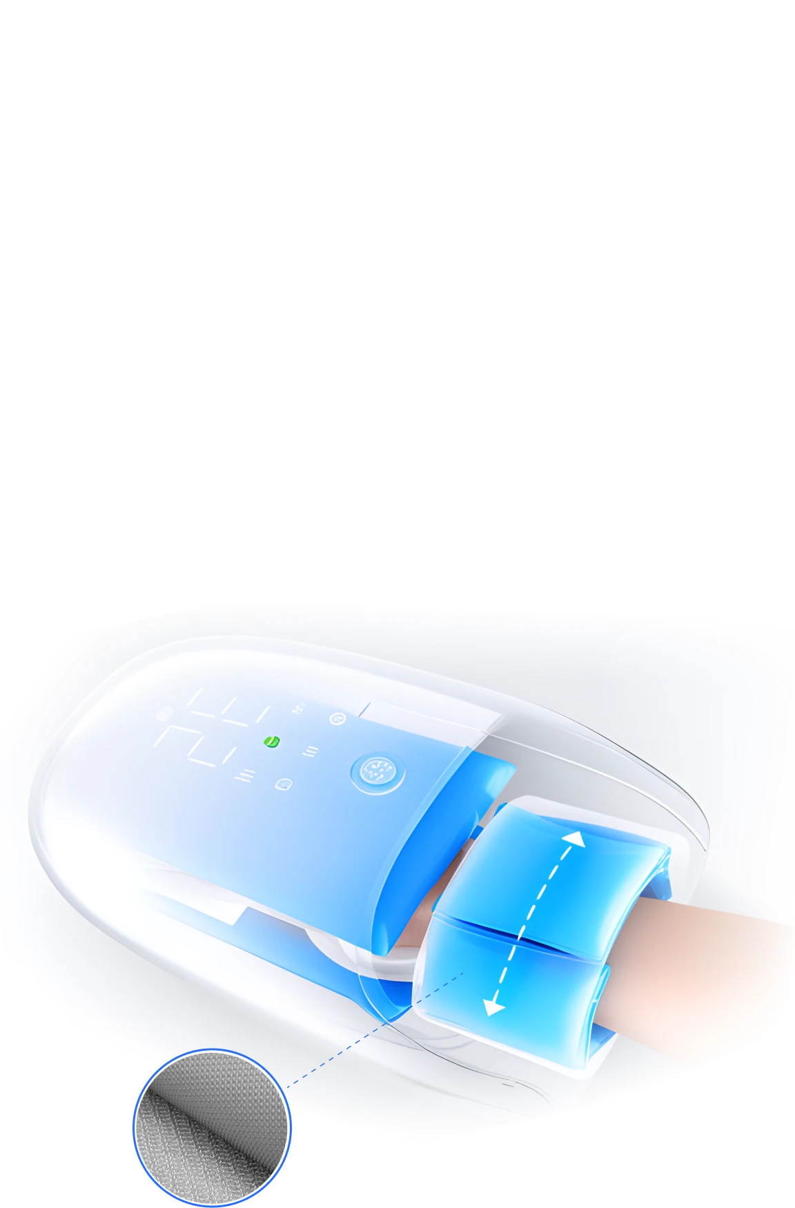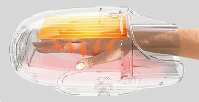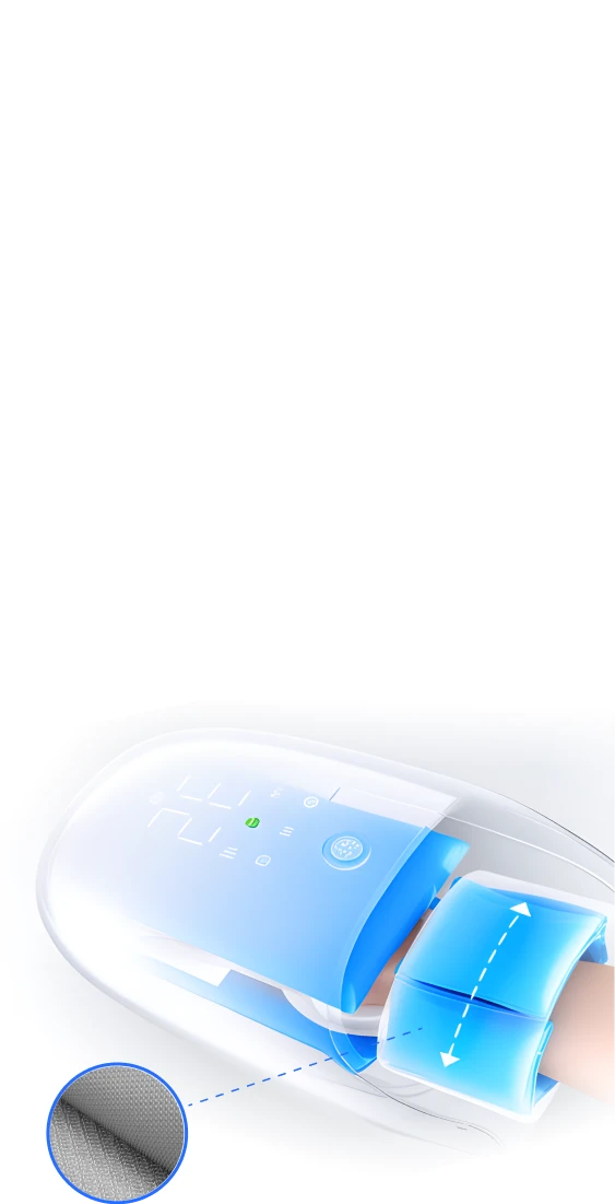 В массажер встроен вентилятор для обдува, который охлаждает руку во время сеанса. Эта опция идеально подходит для массажа в летний период.