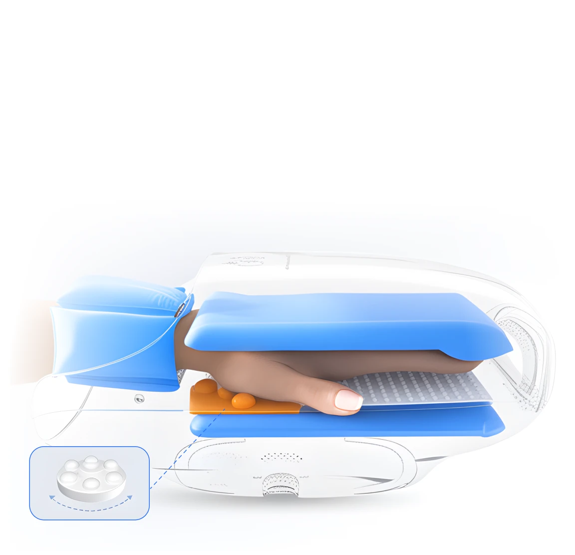 Силиконовые вставки на внутренней поверхности массажера отвечают за точечный массаж.